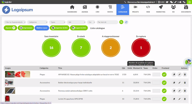 Un catalogue clair, prêt à vendre.