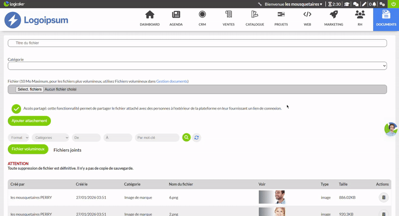 Organisez vos fichiers par type, client, projet ou usage interne.