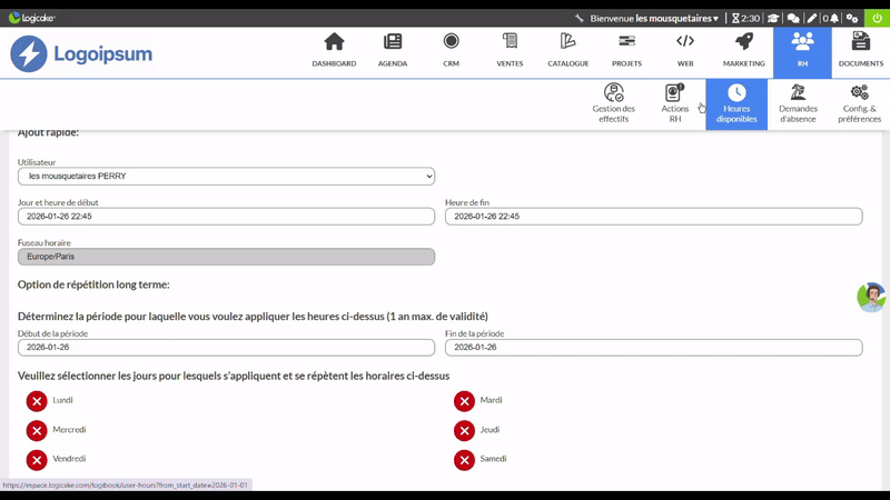 Logicake RH vous aide à gérer les collaborateurs, contrats, absences, feuilles de temps, et tâches internes. Un outil fluide et connecté, pensé pour les petites équipes et structures flexibles.