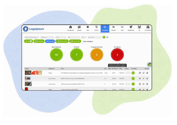 Le module Catalogue de Logicake vous permet de structurer tous vos produits, services ou forfaits dans un seul espace connecté à vos ventes, formulaires et pages web.